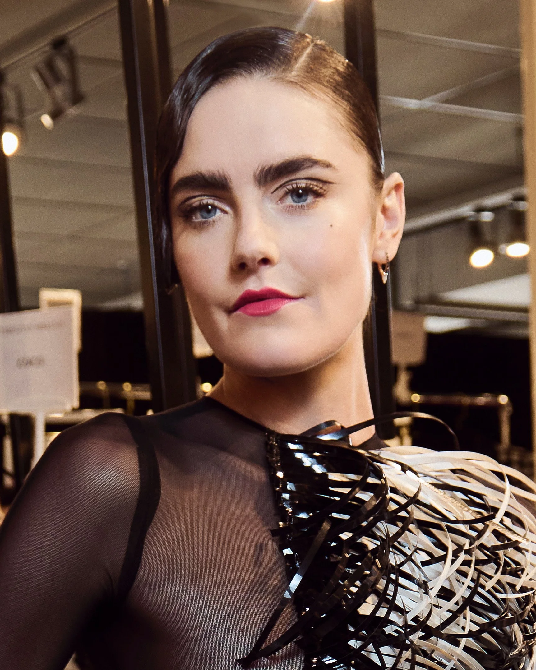 Backstage, Borghese National Esthetician and Skin Expert Gabriel Taylor perfected the models’ glow with the brand’s streamlined five-minute skincare ritual. Products like Fluido were used to illuminate under-eyes and enhance natural radiance, proving Borghese’s philosophy of “minimal steps, maximum results” is ideal for the high-paced world of fashion. The result was a couture-ready glow that embodied both efficiency and elegance—Italian craftsmanship meeting modern minimalism.
