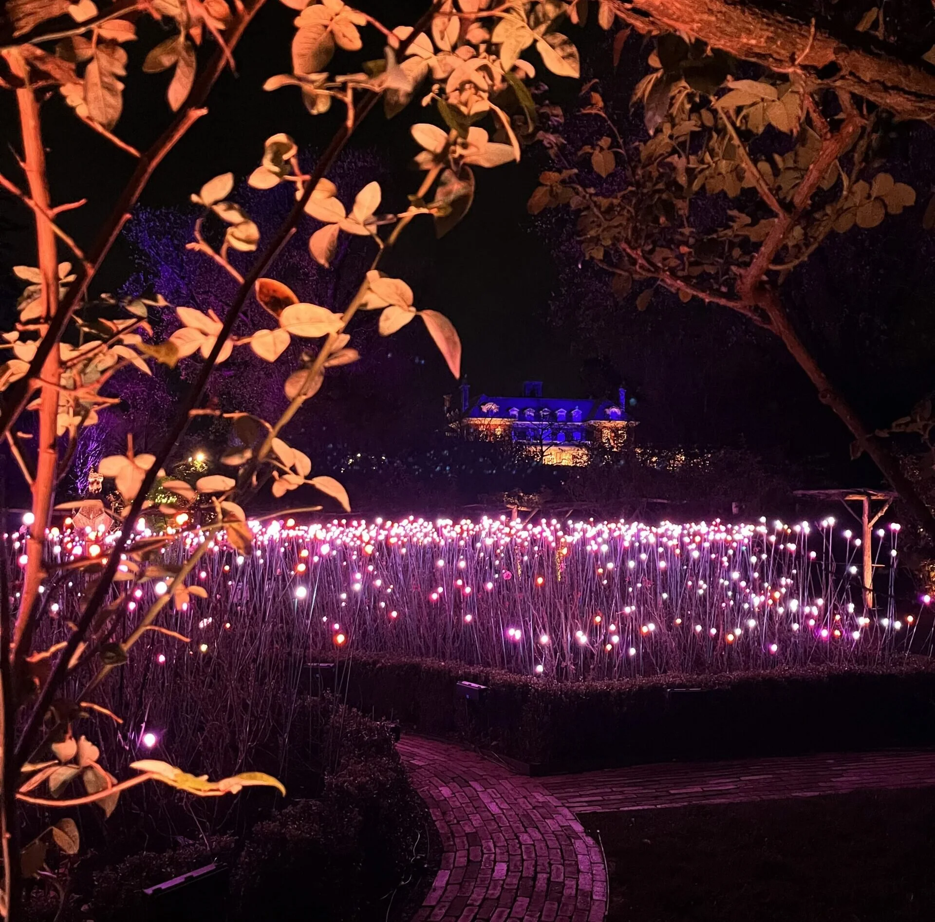 Everyone knows New York is a great spot for Christmas. But not just the city has a lot to offer. On November 25th opened the Shimmering Solstice in Long Island where visitors have the chance to dive into a world full of lights.The hour-long walkthrough experience offers wonderful lights in all shapes and colors to seasonal music. The whole setup was customized to the landscape and architecture. Visitors walk the beautiful paths of Old Westbury Gardens through the world-famous Walled Garden, Rose Garden, South Lawn, Allée, and more while being surrounded by magical lights. The light show also includes interactive elements and even has a great location for proposals.Since it can get very cold this time of the year, a lively warm area with a concession stand for snacks and drinks is placed along the way to the highlight and final destination at Westbury house. The 10-minute intricately designed light show, projected onto the South facade, marks the perfect end to the incredible experience.The planning of Shimmering Solstice took about a year and has been designed by Lightswitch with Catholic Health as the presenting sponsor. Everything was installed in under three weeks by a team of 25 designers, technicians, and crew. The hard and detailed work pays off. Visitors get to experience a one-mile path light show, covering 13 acres.Whether you go with the whole family, as a couple, or on your own, it's suitable either way. Those that went last year will notice additional visuals and changes, so it's worth it to come again for sure! The walkthrough-light show will run on selected dates throughout January 1, 2023, for a total of 22 nights. For more information visit the website shimmeringsolstice.com.