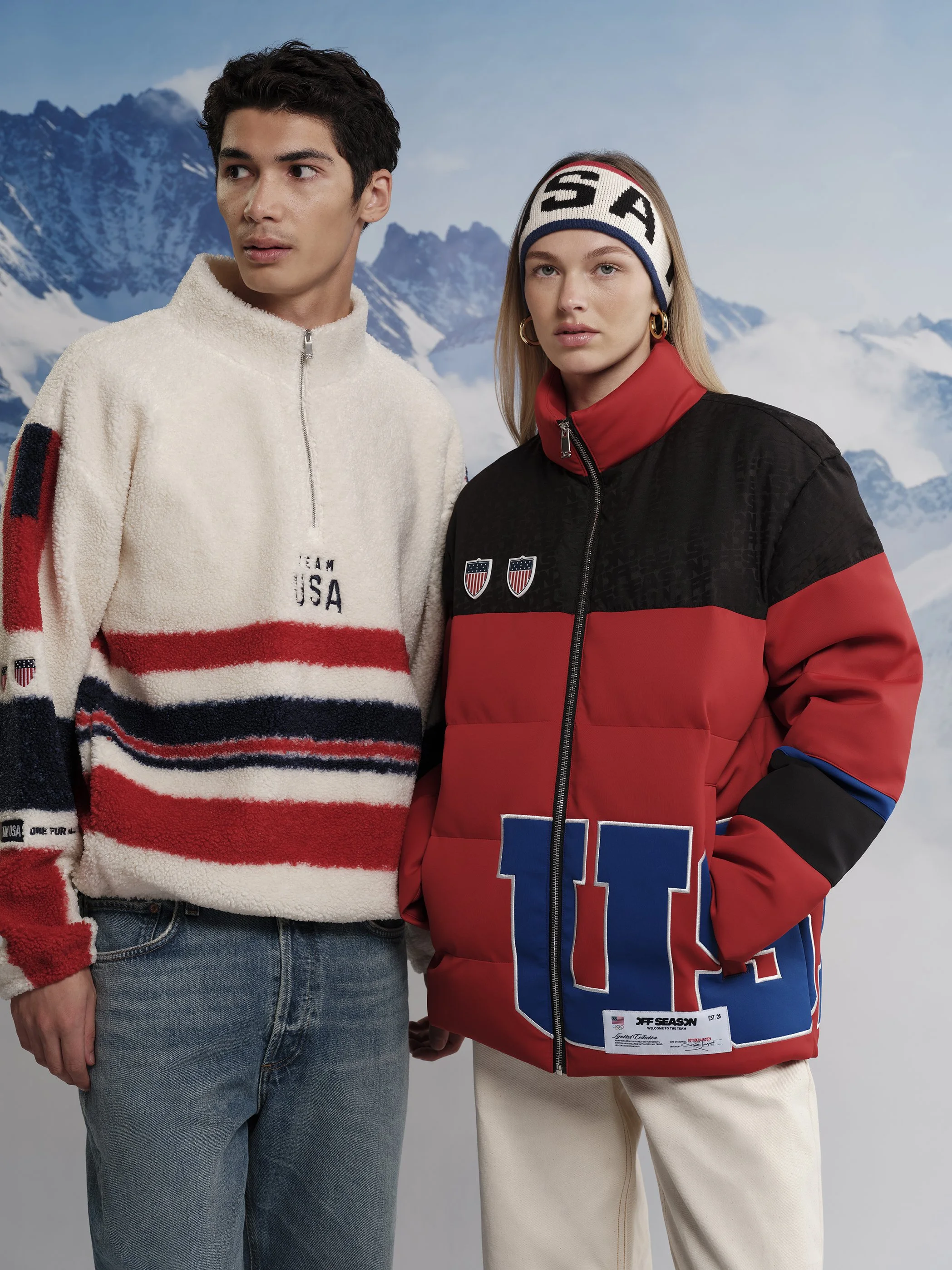 Now, Off Season reaches a major milestone with its first ever collaboration with Team USA. The limited edition, seven-piece winter capsule collection arrives ahead of the Winter Olympic and Paralympic Games, blending bold fashion, function, and national pride. With price points ranging from $45 to $625, the collection reflects the brand’s commitment to accessible yet elevated design.