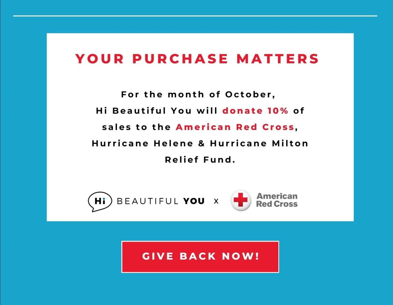 Hi Beautiful You Friends + Family Sale Giving Back to Hurricane Relief