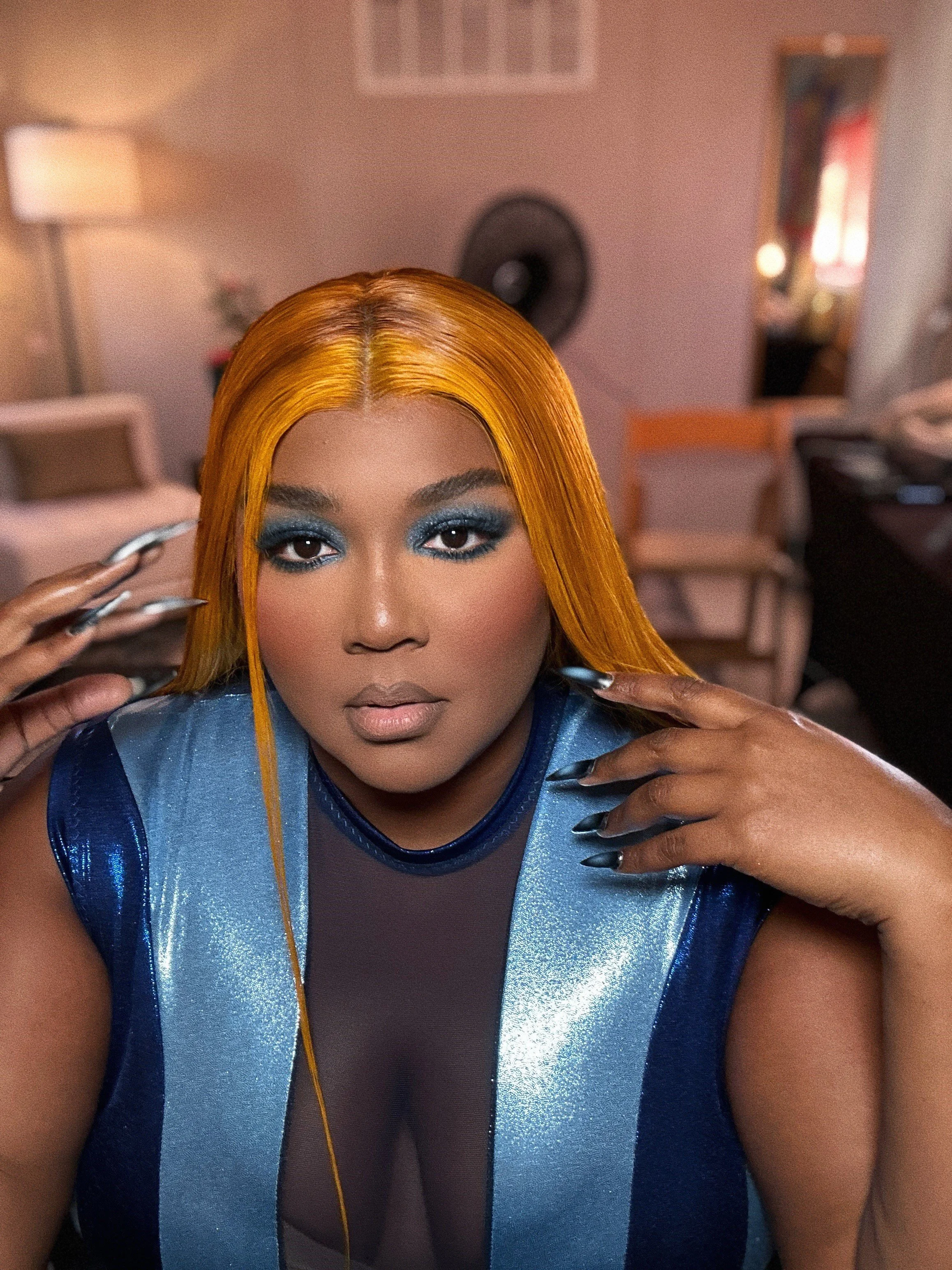 Rapper, singer, and actress, Lizzo traveled to New Orleans last Friday for the second U.S. stop on her world tour, The Special 2our, at the 2023 New Orleans Jazz & Heritage Festival. Editorial, red carpet and celebrity makeup artist Alexx Mayo created Lizzo’s all-denim look which was complimented by a bold blue glam look using only Clinique products. The artist chose Clinique as her beauty brand of choice when partnering with Lizzo for her world tour which resulted in opting for a deep blue eye which was inspired by the shades of denim in her outfit.