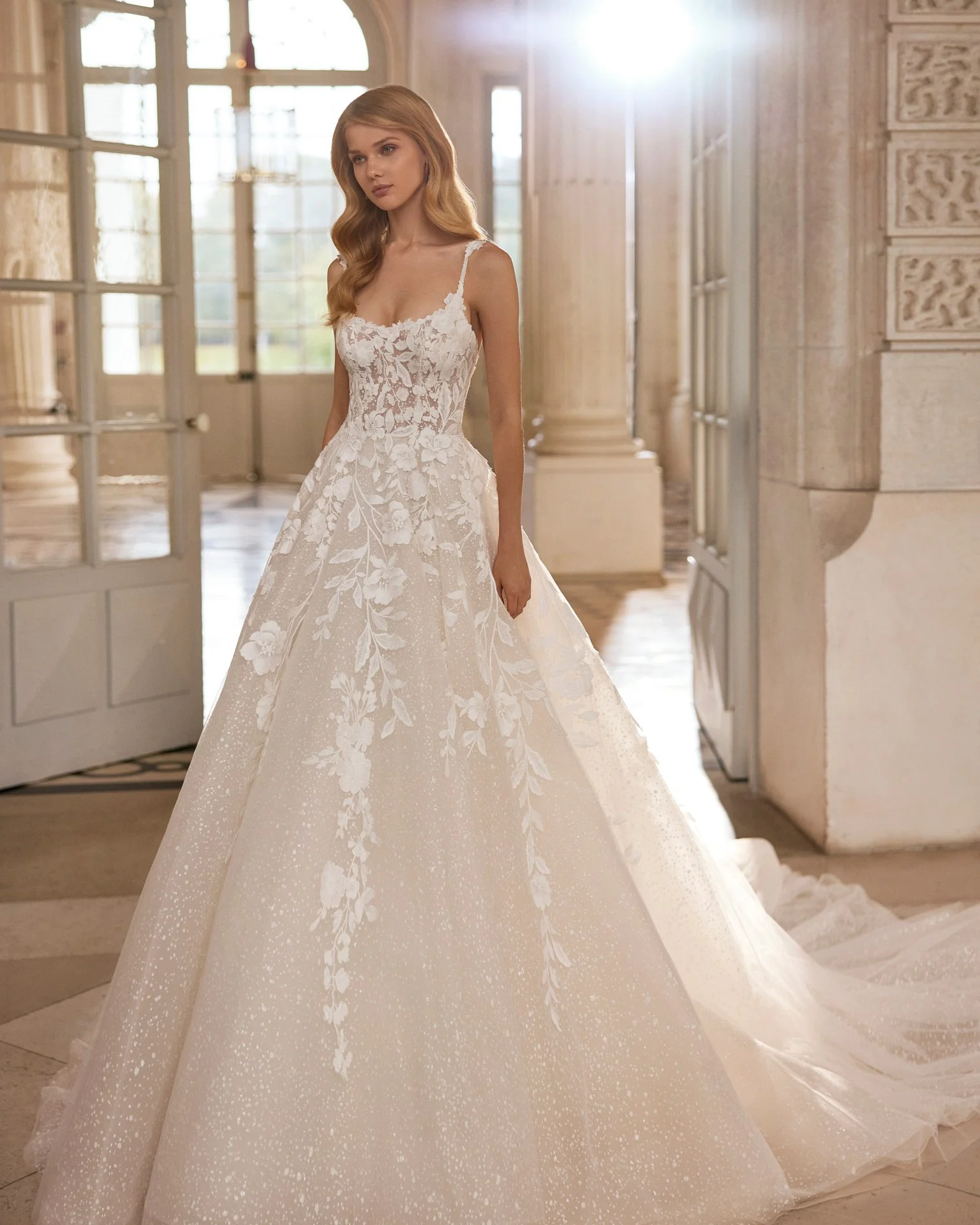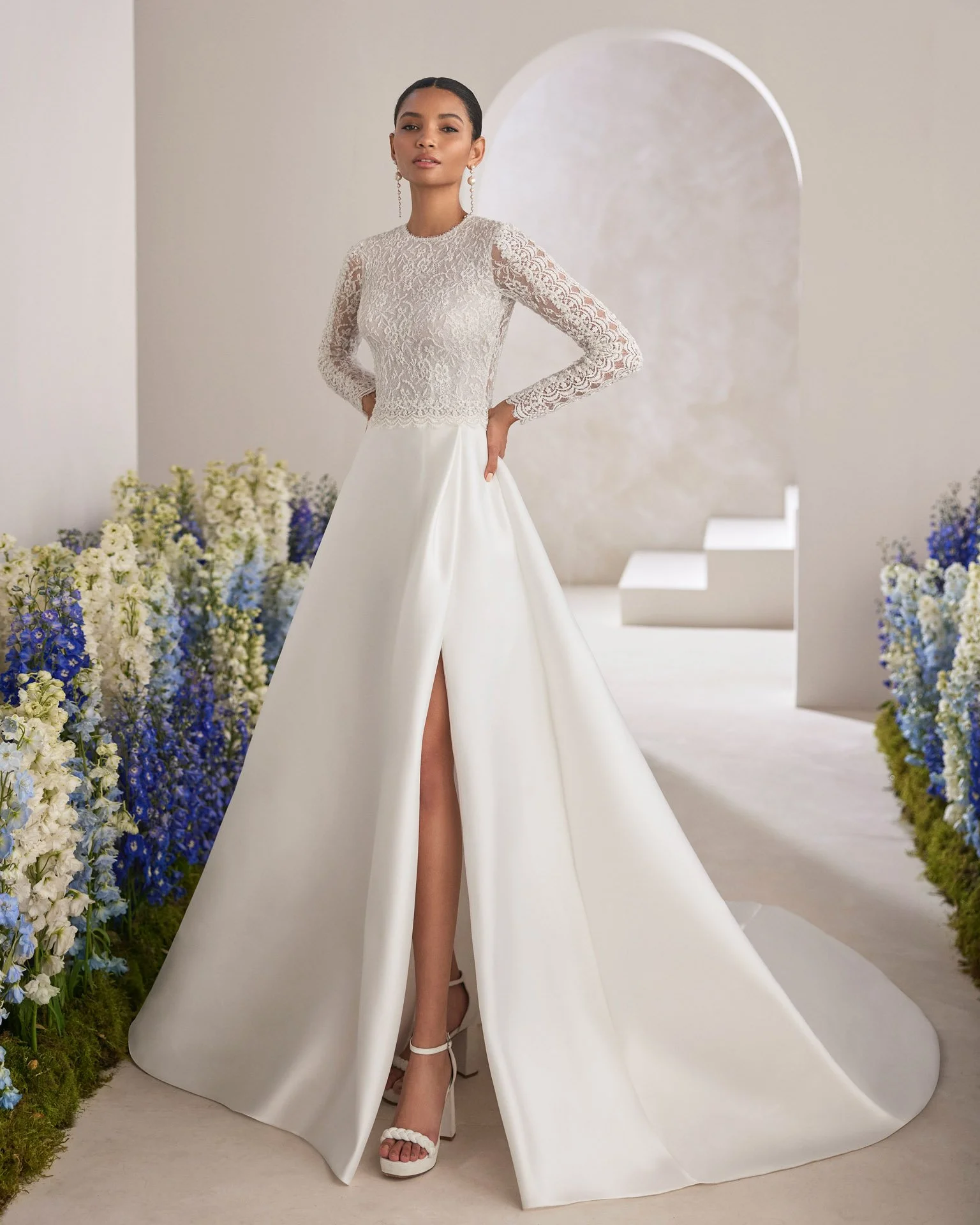 The 2025 Rosa Clará Bridal Collection is a celebration of timeless elegance and modern beauty, with designs that cater to brides of all styles, ages and shapes. This season, the collection embraces a romantic yet sensual aesthetic, showcasing a variety of textures, intricate details and silhouettes that capture the vison and individuality of each bride. Brides will find everything from voluminous princess gowns with intricate floral lace and French bejeweled detailing, to sleek, minimalist crêpe designs that offer effortless elegance.