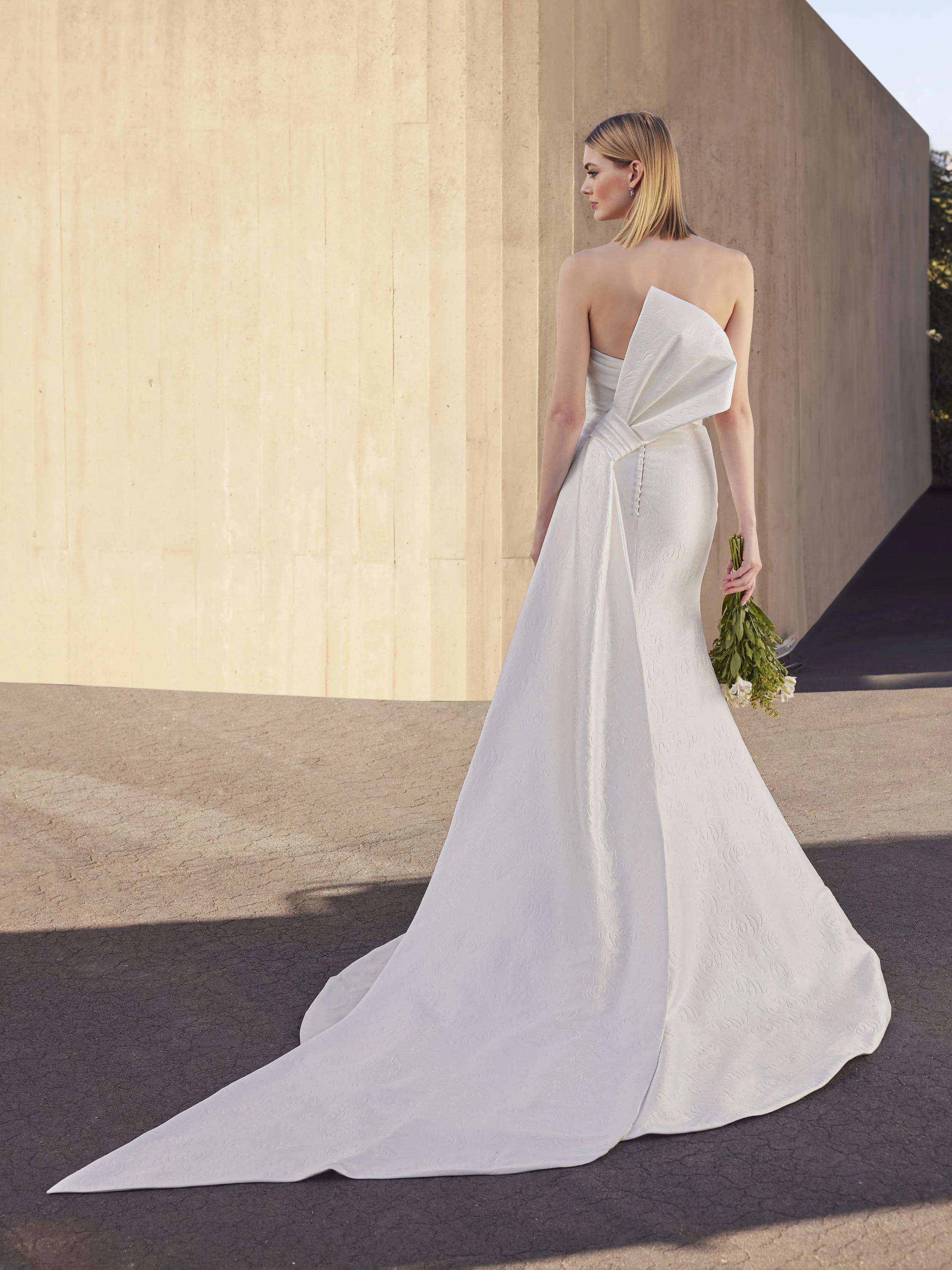 Big bow energy is back in the most bridal way. From refined back bows to sweet shoulder accents, this flirty trend offers a bold yet polished finish.