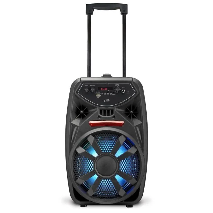 Keep the party pumping with this portable, wireless Bluetooth speaker from iLive. The battery lasts for approximately six hours and has a retractable pull handle and roller wheels for easy transportation. Plus, it has fun color-changing LED lights, as well as a microphone input to really up the ante.
