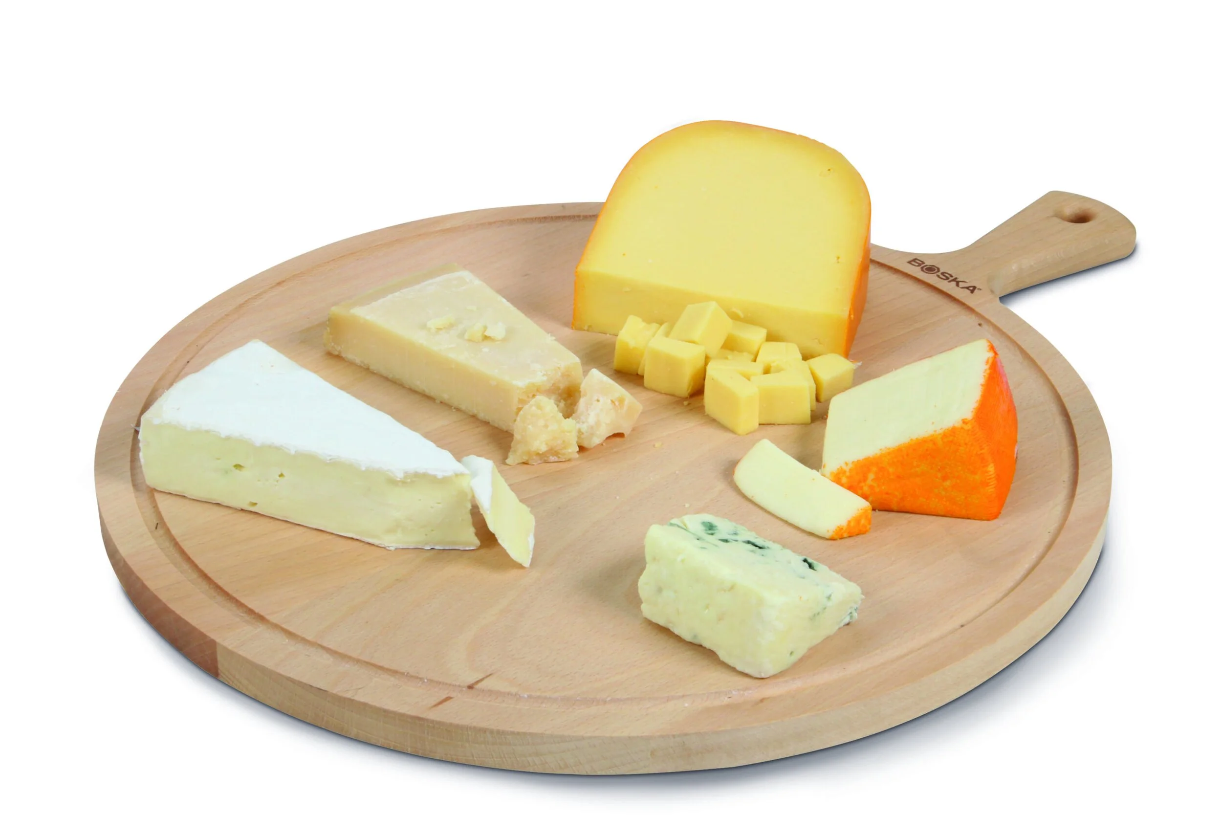The Serving Board Round Amigo is a beech wood board and has a stylish and rustic look. Plate up a delicious charcuterie, cheese, and/or pizza, grab a glass of wine, and enjoy. After purchase, treat the wood with the BOSKA Board Oil, and repeat this once per month. Wash it by hand with some lukewarm water and dish soap. That way, the board will last you for years! It also comes with a 10 year warranty. L - 13 inch, $32.99Looking for a compact and stylish fondue set?
