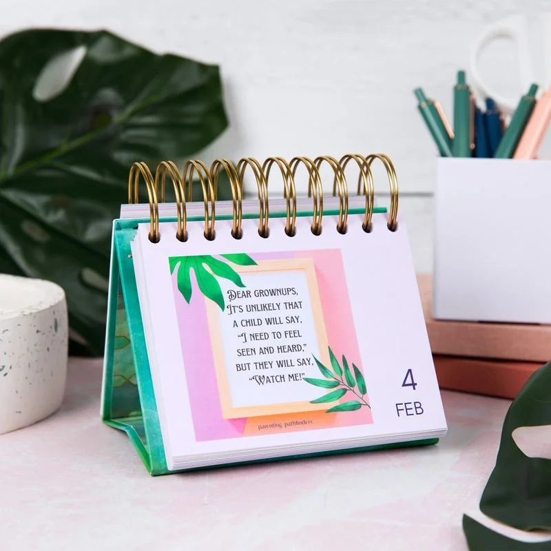 Michelle Felder, a licensed clinical social worker and parenting therapist based in NYC, created an undated calendar that provides parents and caregivers 365 pages of insight, tools, and strategies to help parent your best, one day at a time. It's a compact, desk-friendly gold spiral calendar, can be reused for years to come, and made of thick & durable paper.
