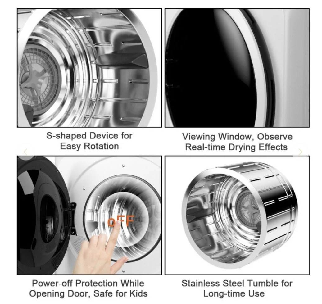 ● Quiet Design: In order to provide a comfortable environment, the noise of this clothes dryer is minimal. So please don’t worry, it won’t influence your normal conversation and sleeping.