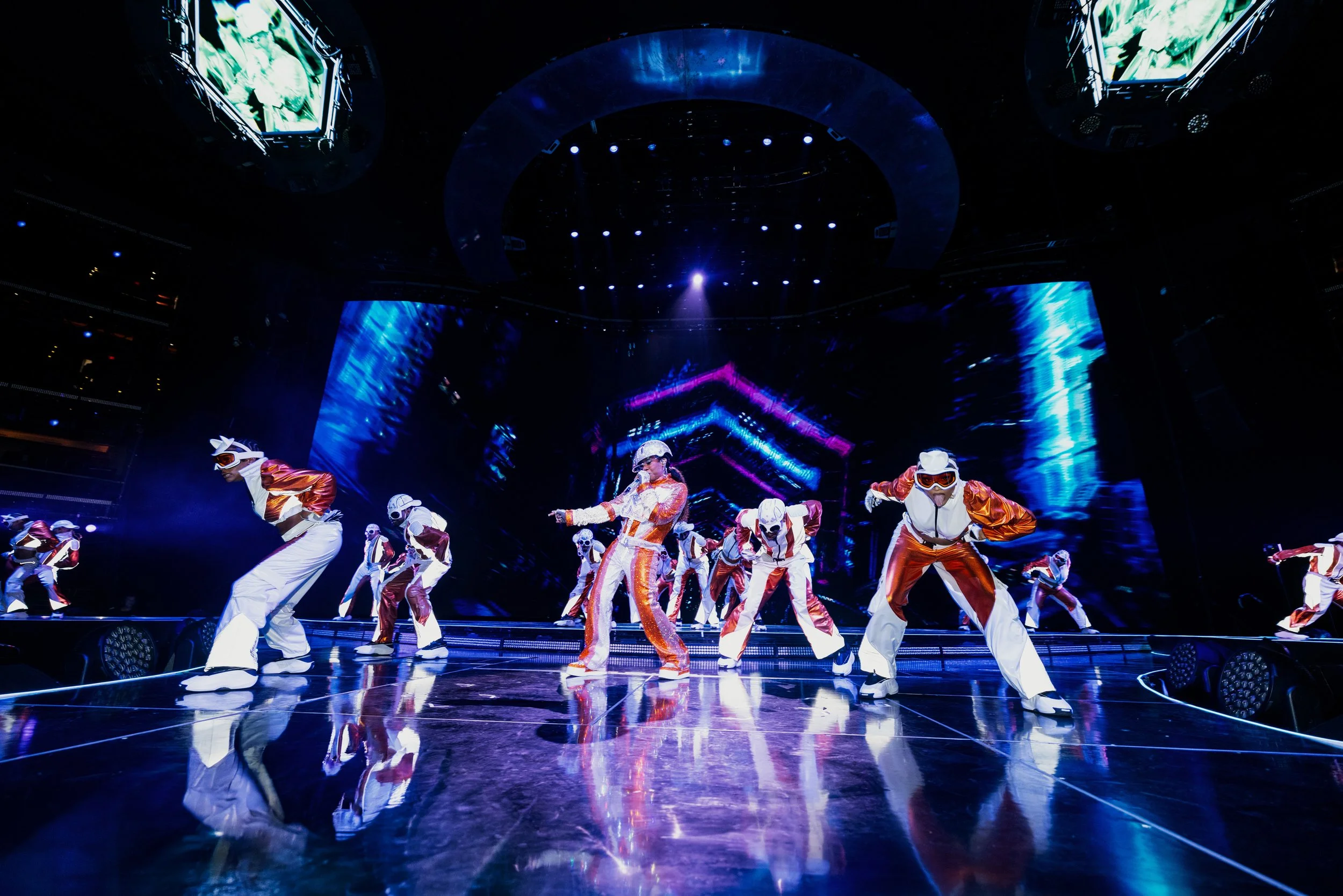 4,000 hours spent executing Elliott’s creative vision – from choreography to content – spanning animators, multiple moving video screens equipped with real-time tracking technology, a flying stage that levitated above the audience, four orbital video pods, sonic booms (high-powered fog that resembles cryo), and state-of-the-art lighting design – with over 1,003 light fixtures in total.
