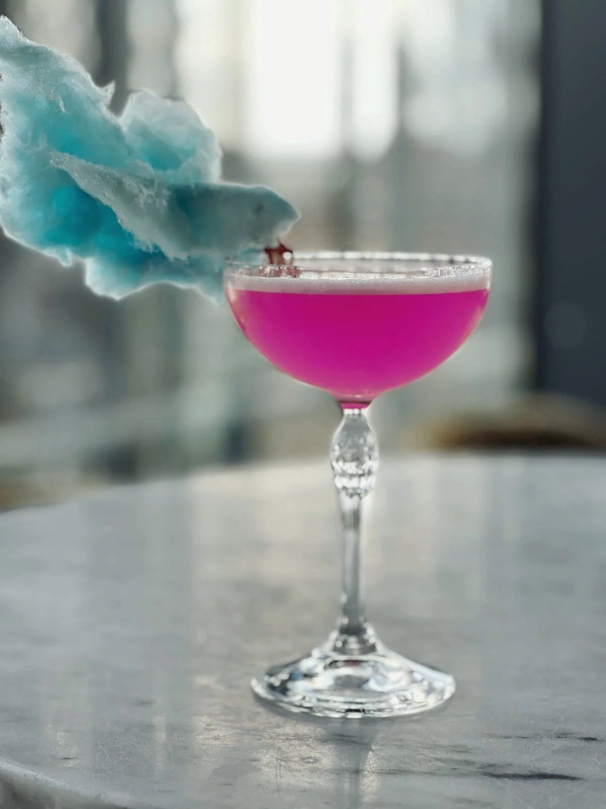 Top it off with sparkling wine or champagne and garnish with blue candy floss
