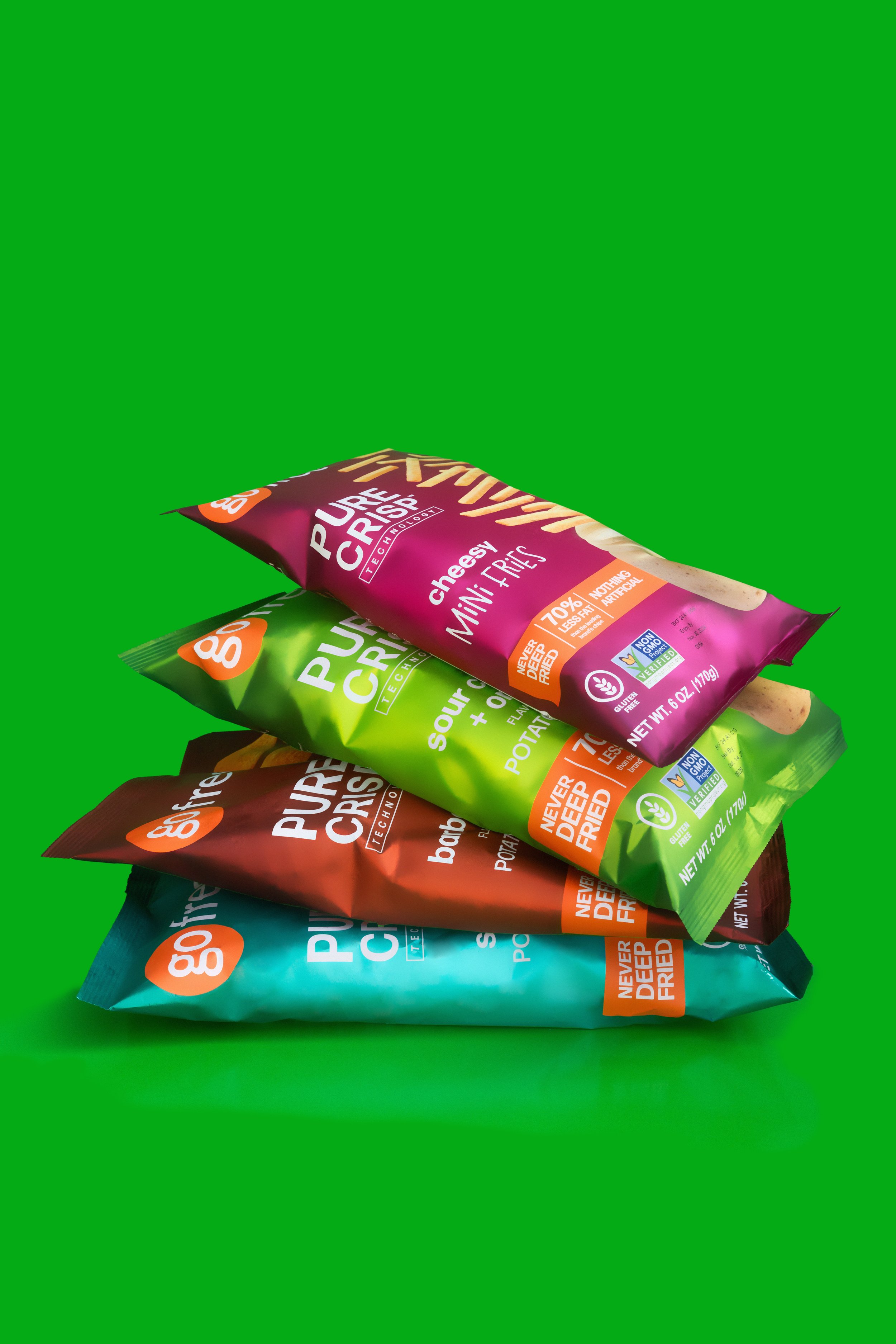 Healthier Snack Time: Go Free chips are made using Pure Crisp™ technology, a unique process for drying and dehydrating whole fresh potatoes. This method results in super crispy chips that are never greasy, with fewer calories and fat per ounce than traditional (deep-fried) chips.