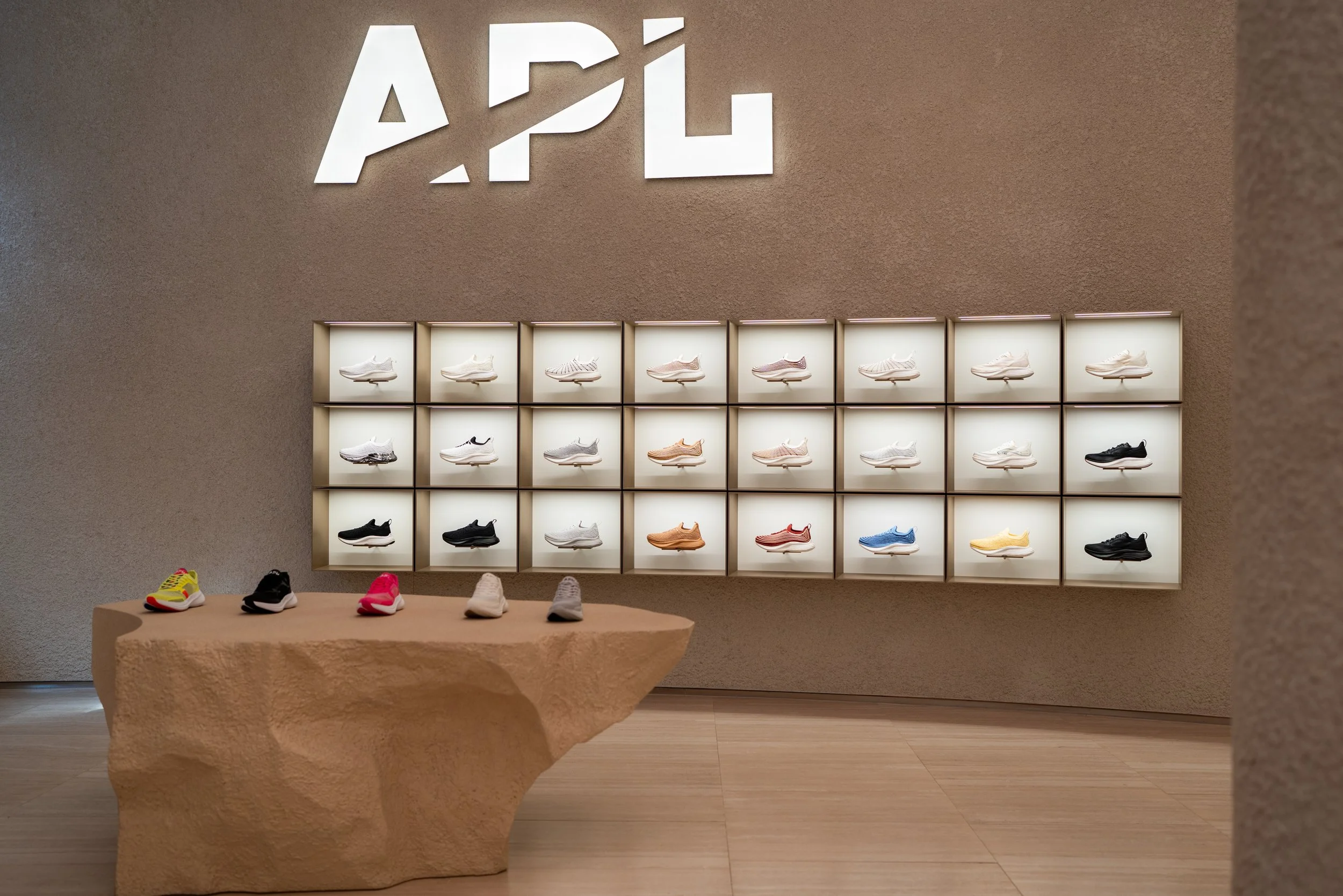 APL’s newest flagship store in SoHo, New York, embodies the brand’s philosophy of combining beauty and function, reflecting the same values found in its iconic footwear. Spanning nearly 4,000 square feet, the store offers an immersive experience that merges minimalist design with luxurious details. From the Roman travertine floors to the golden brass displays, every element emphasizes APL’s commitment to timelessness, luxury, and innovation. According to Falk, "Every APL flagship resonates with the distinct essence of the city it calls home. In the heart of SoHo, we’ve created an experience that captures the magic of New York—the thrill of the city and the timeless beauty that APL represents." Designed in collaboration with London-based firm Al-Jawad Pike and New York-based Tricarico Architects, the space features a unique curved perimeter wall and teardrop columns, creating a sense of tranquility amidst the busy streets. Custom-designed Viabuzzuno® lightboxes showcase the product in a gallery-like setting, while five distinct vanity rooms, each representing a borough of New York and lined with vibrant onyx stones, offer a memorable, shareable experience. More than just a store, APL’s Flagship is a destination where product and space come together to tell a unique story, allowing customers to connect with the brand on a deeper level.