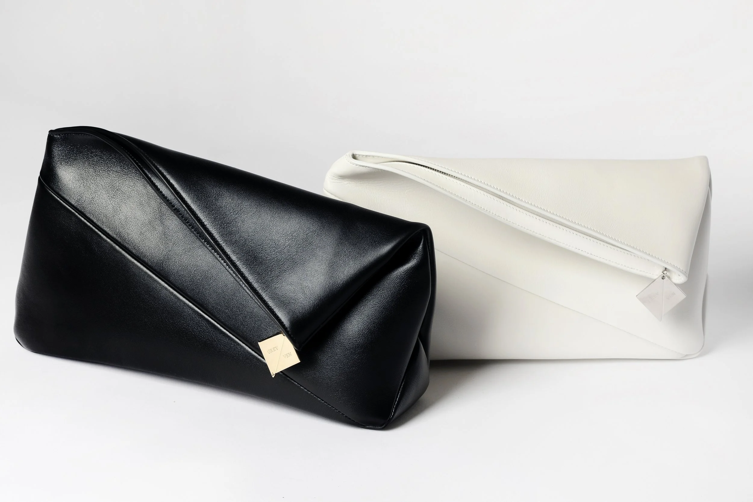 A soft, folded clutch that exudes understated elegance. Comes with a removable card holder and custom hardware.