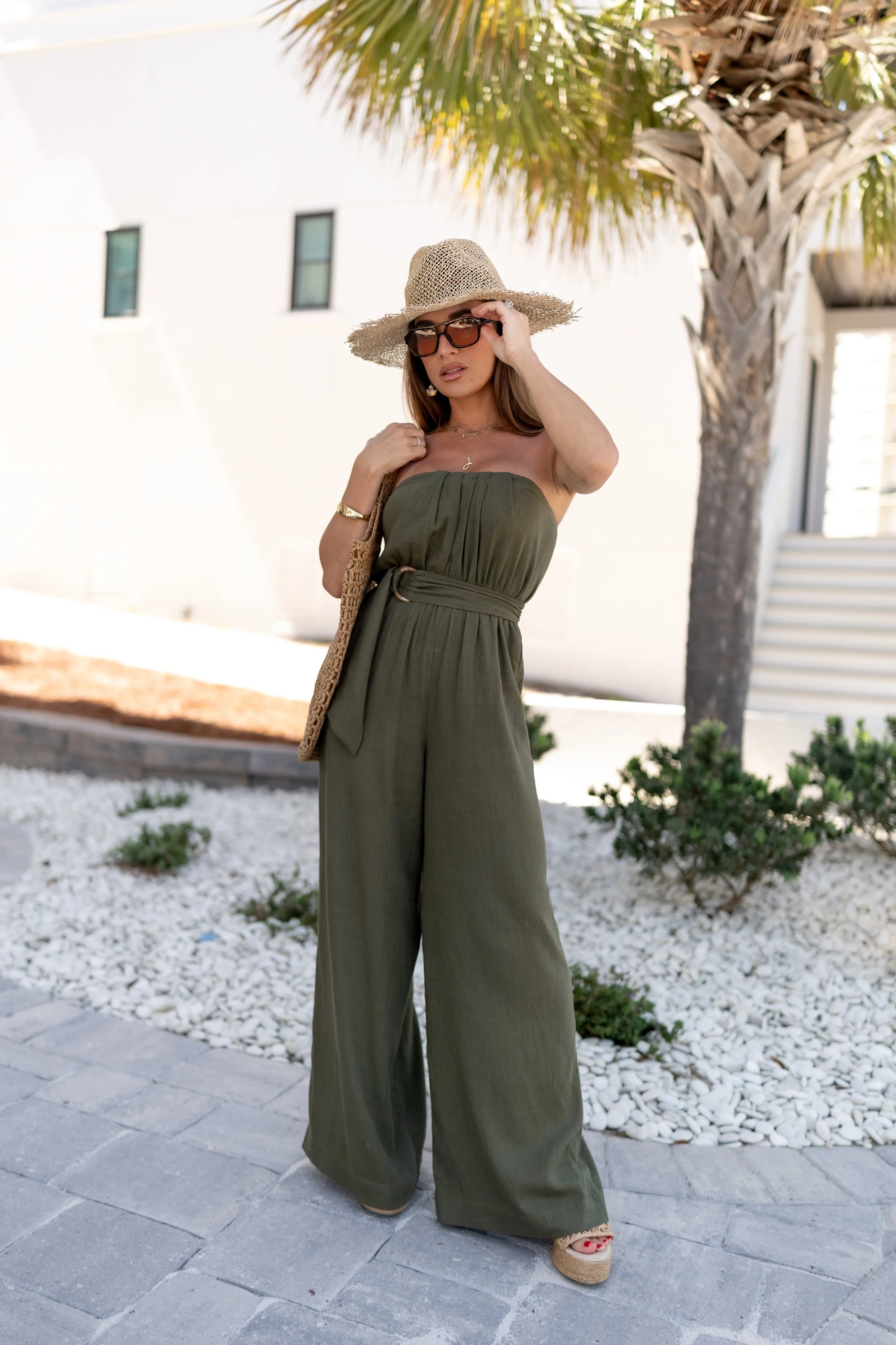 Jessie’s personal favorite is the Olive Green Strapless Wide-Leg Jumpsuit ($58). “I love that you can dress it up or keep it casual,” she shares. “It’s great for summer, but also transitions well into fall—it’s one of those timeless pieces that just works all year long.”