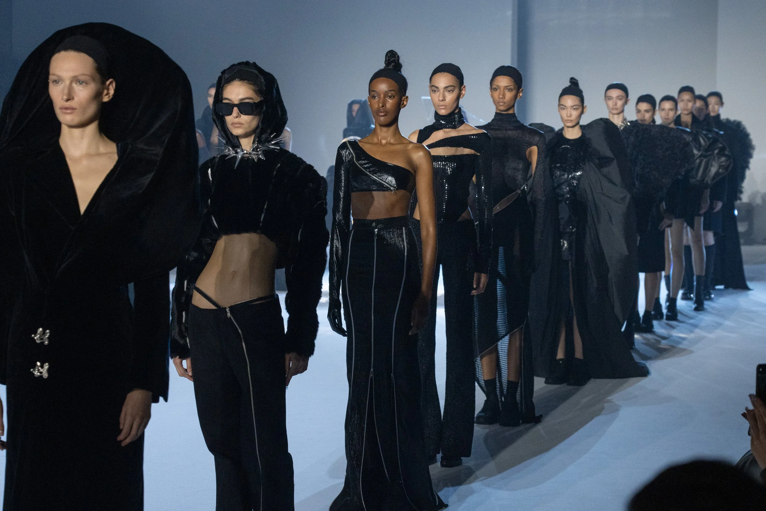 The 37-look show was paired with an edgy and dramatic soundtrack and even featured a performance by YOSHIKI himself. YOSHIKI's team was star-studded including stylist Carlyne Cerf de Dudzeel, former Vogue fashion director. The team also featured casting by Maida Gregori Boina, hair by Odile Gilbert, makeup by Kabuki, and he assigned Kuki de Salvertes. The show acted to bring together a powerful collaboration.