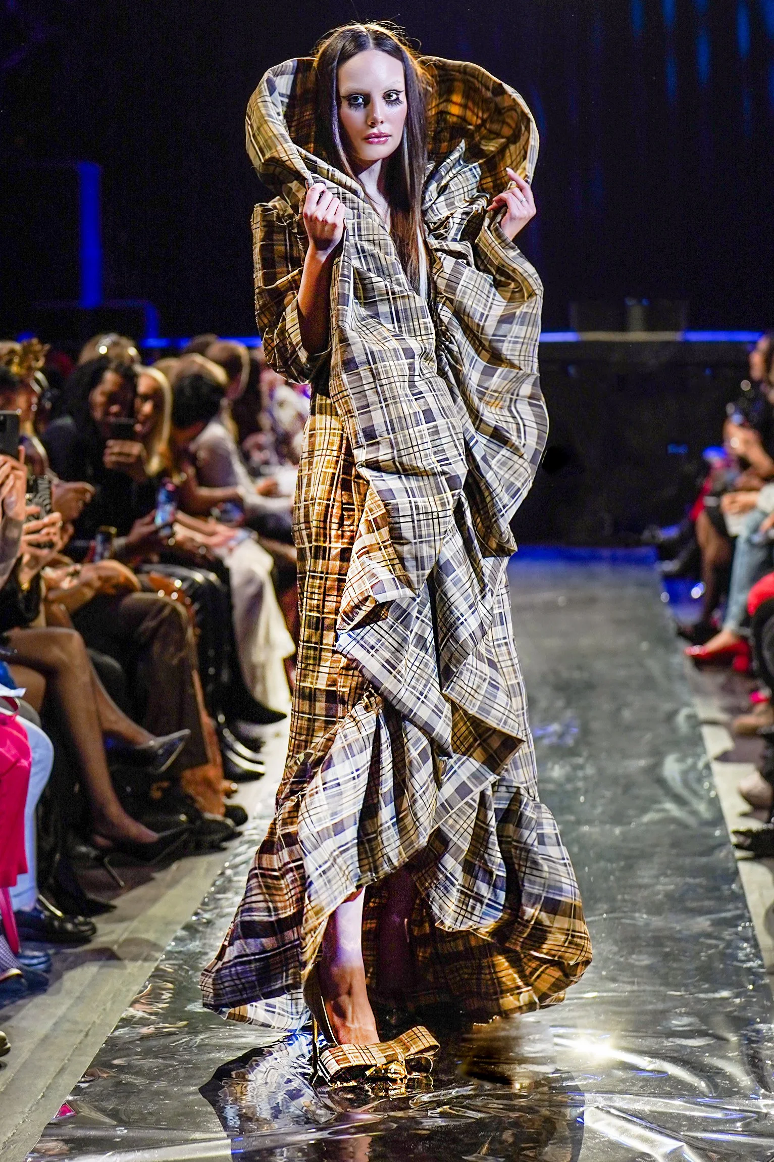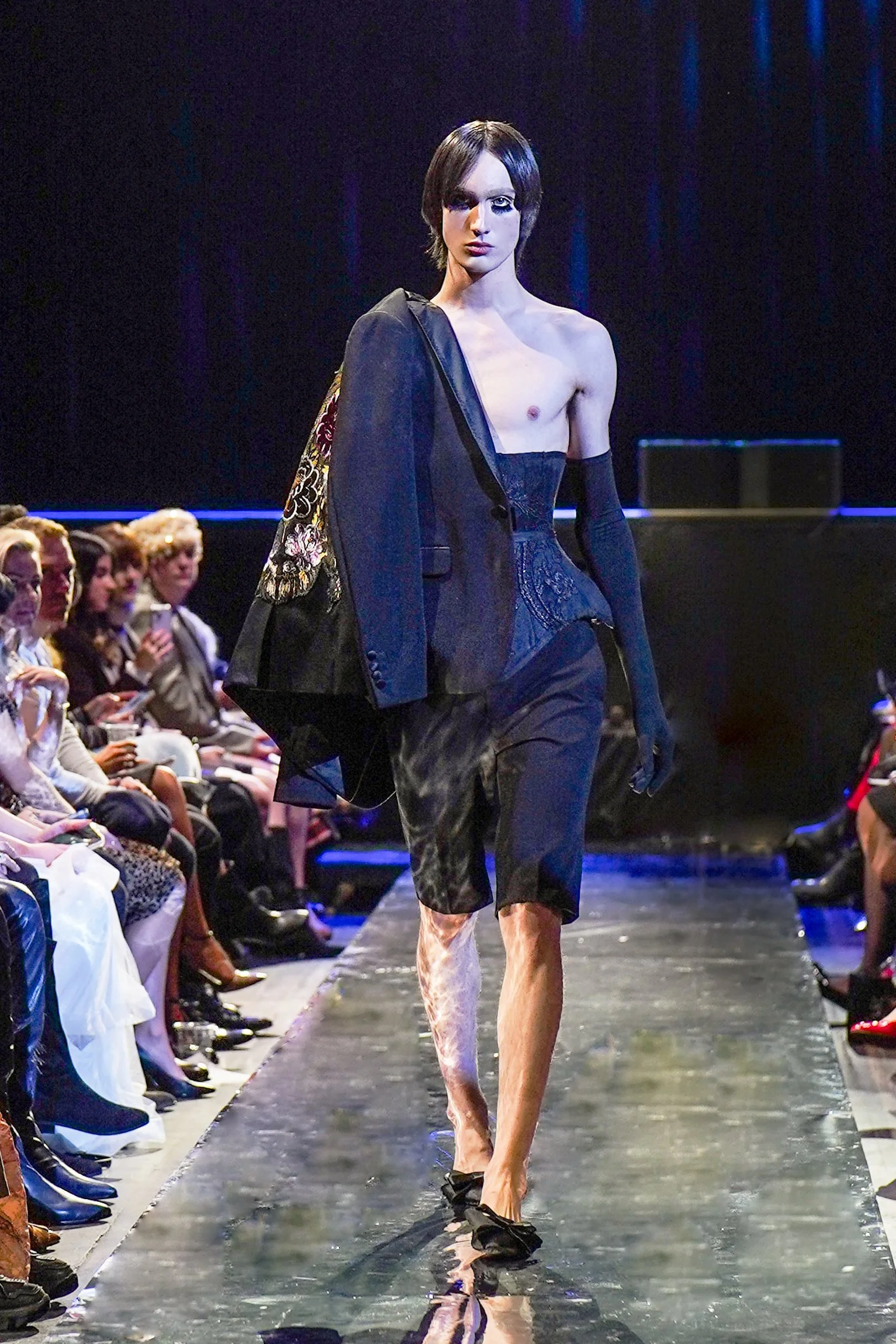 Victor dE Souza’s collection uses Edwardian and Baroque references and 21st-century style to play an ode to history. His pieces begin as gothic-inspired silhouettes with intricate stitching and then transform into modernized pieces. The show unfolds alike a history lesson. The pieces involved were described as a “masterstroke of design.”
