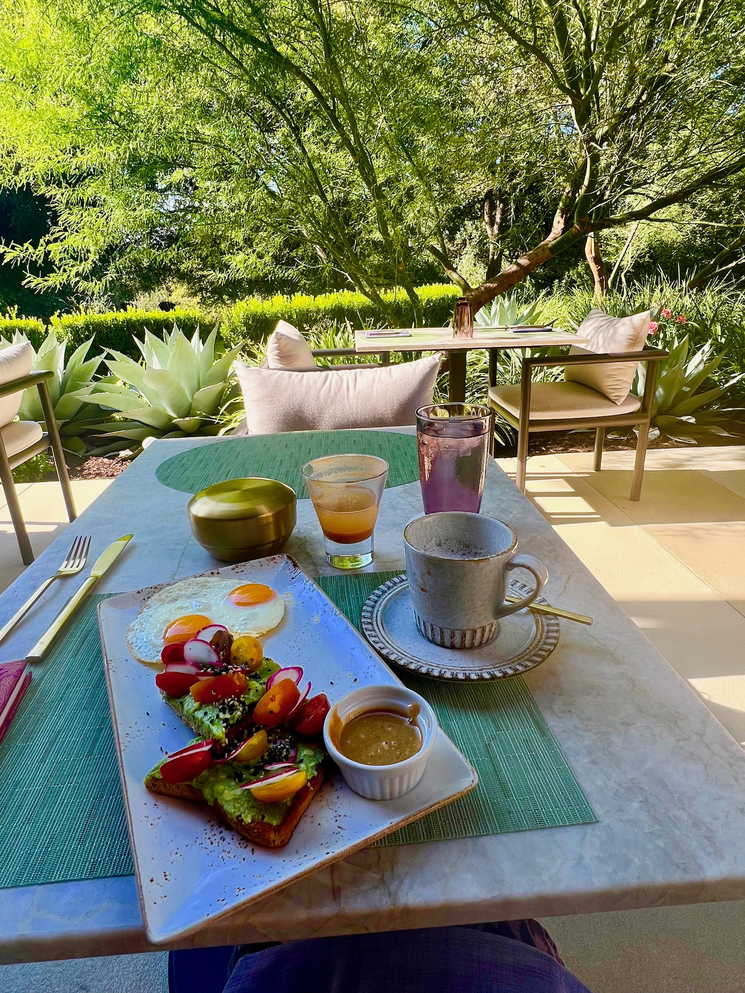 Breakfast at Ciclo with all the classics as well as huevos rancheros and a smoked brisket taco plus freshly squeezed juices and elixirs, accompanied by birdsong and lake views, is a great way to start the day.