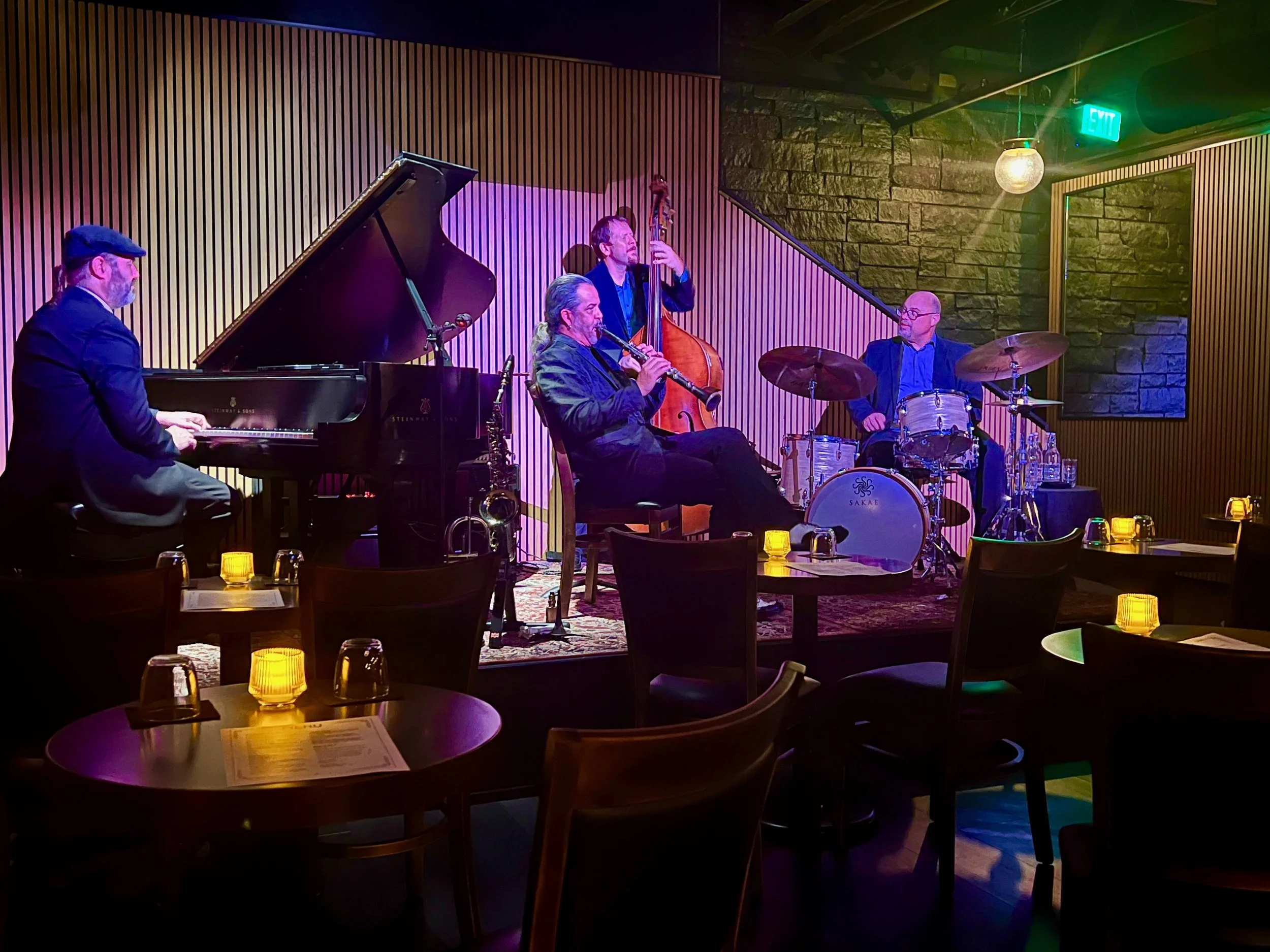 Kris Kimura, Austin-based award-winning vocalist and woodwind specialist opened this jazzy gem in 2018, where he often performs the timeless music of the American Songbook, accompanied by the Ryan Davis Trio. His homage to Nat King Cole with his own velvety smooth vocals and masterly instrumental talent including his exquisite bass flute transported me to another era. In between heartfelt renditions of classics ‘ When I Fall In Love’, ‘She’s Funny That Way’ and ‘ Walking My Baby Back Home,’ Kris riffs rhapsodic about the legendary Mr. Cole, his own journey that led to opening this club that’s been his ‘dream’ along with hugely entertaining stories sure to enchant one and all.