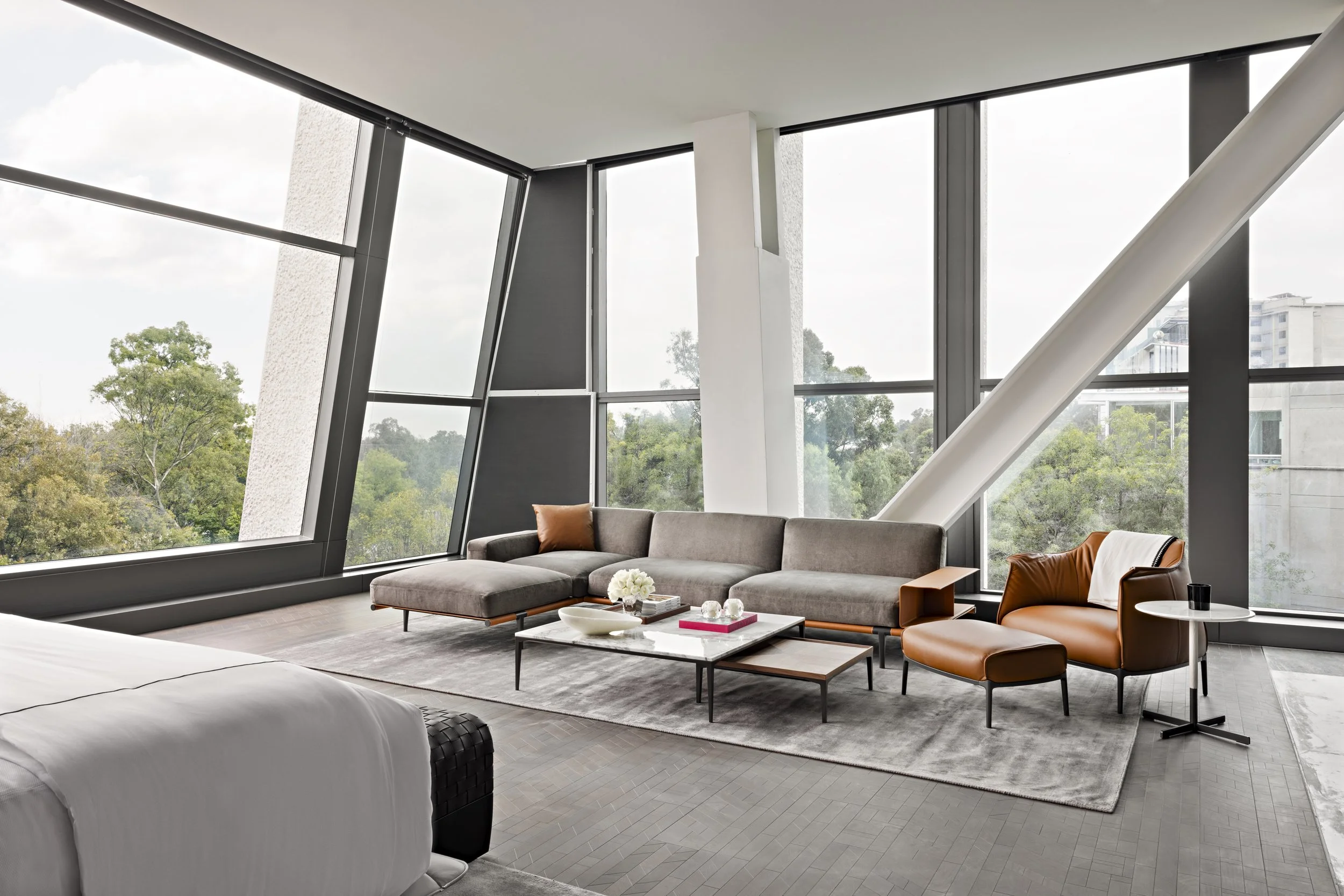 This corner unit offers seemingly unlimited space, in which sits a soaking tub and separate rain shower, king size bed adorned with 600-count sheets, living room, dining room, and windows offering 180 degree views of Chapultepec Park. Regardless of your room choice, it’s a guarantee that you’ll notice how carefully attended to the hotel’s luxurious details are, ensuring an overwhelming sense of contentment.