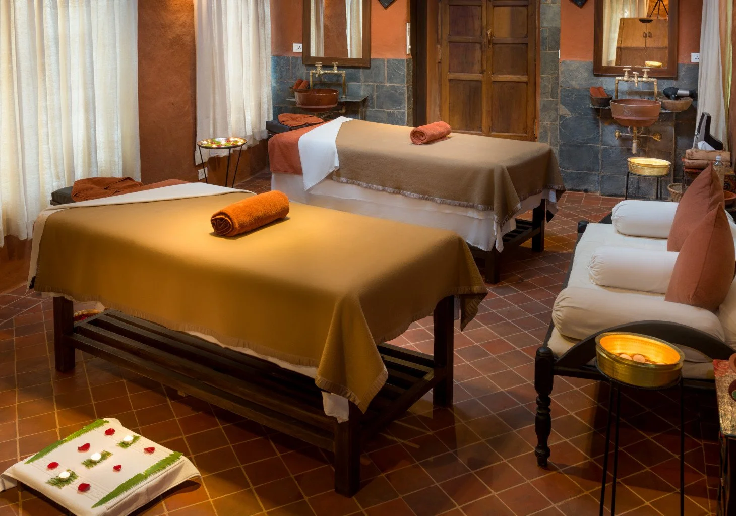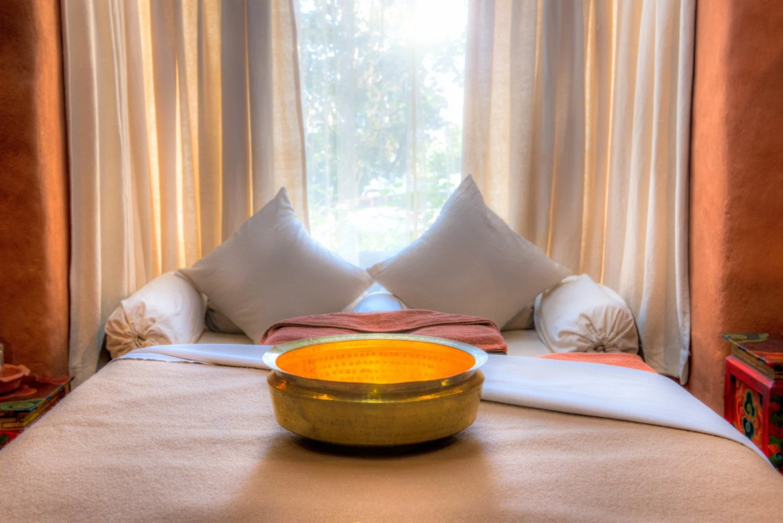 What drew me in was the incredible architecture of the hotel. Created by Dwarika Das Shrestha, the hotel was built with handmade bricks and incorporates wood carvings, sculptures, bronze artifacts and terracotta. As soon as you pass the gateway to the hotel, you are transported into a Newari paradise. The hustle and bustle of Kathmandu is suddenly left behind and filled with serene surroundings with both Hinduism and Buddhism design elements.The Pancha Kosha Himalayan Spa incorporates Ayurveda, Buddhist medicine and traditional rituals and treatments. The focus is the Pancha Kosha- the 5 layers of being. Anamaya Kosha (the vital or food component), Pranayama Kosha (the energy or life force component), Manomaya Kosha (the mental or psychological concept) Vigyanmaya Kosha (the intellectual component) and the Anandamaya kosha (the pure bliss and happiness component). The spa menu is extensive and includes practices unique to the region, like Singing Bowl Therapy. We settled however on the Body Harmony combination which was a Himalayan Trekkers massage (only fitting) followed by a revitalizing herbal bath. When I entered the massive and beautifully decorated treatment room, complete with a queen size bed - I was immediately hit with a powerful, potent eucalyptus scent.